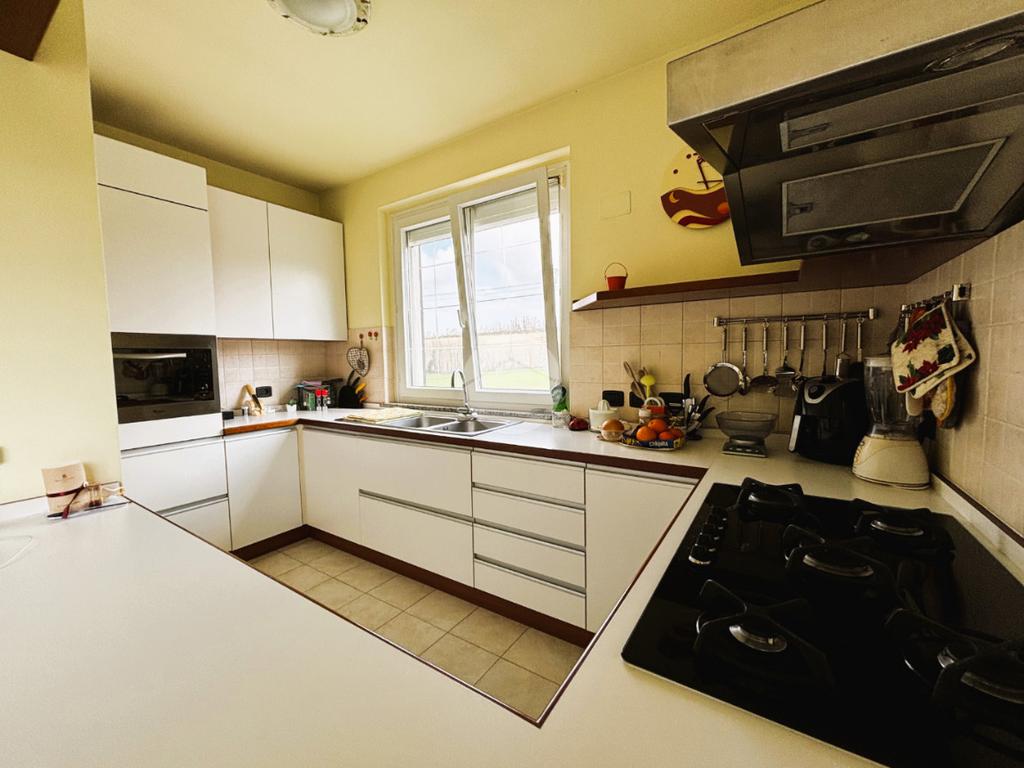Al piano rialzato , di 136 metri quadri , troviamo: salone con camino, cucina abitabile, tre camere da letto ,ripostiglio e doppi servizi.